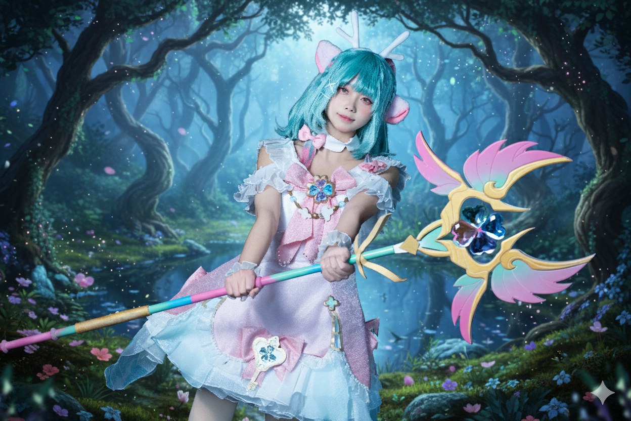 前言这次的 Cosplay 主题,是把魔法少女放进月光倾泻的森林。灵感来自最近看到的一组奇幻风写真:柔和的粉蓝色裙装、夸张的权杖、闪烁的萤光粒子,都让人想起儿童时期对“变身”的幻想。为了记录整个创作过程,就把我在妆造、道具、拍摄和后期中踩过的坑整理成篇,希望能帮到准备尝试奇幻风格的你。 造型设计 色彩:以糖果粉 + 薄荷蓝为主色,搭配少量金色细节点亮权杖。衣服的面料选用了带闪粉的纱布,能够...